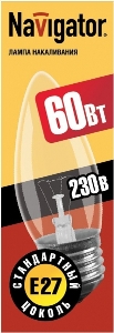 Лампа накаливания E27 NI-В-60-230-CL Navigator применяется для внутреннего и наружного освещения помещений, офисов.