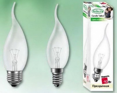 Наименование Лампа накаливания E14 Candle tailed C35 clear 60W Selecta
